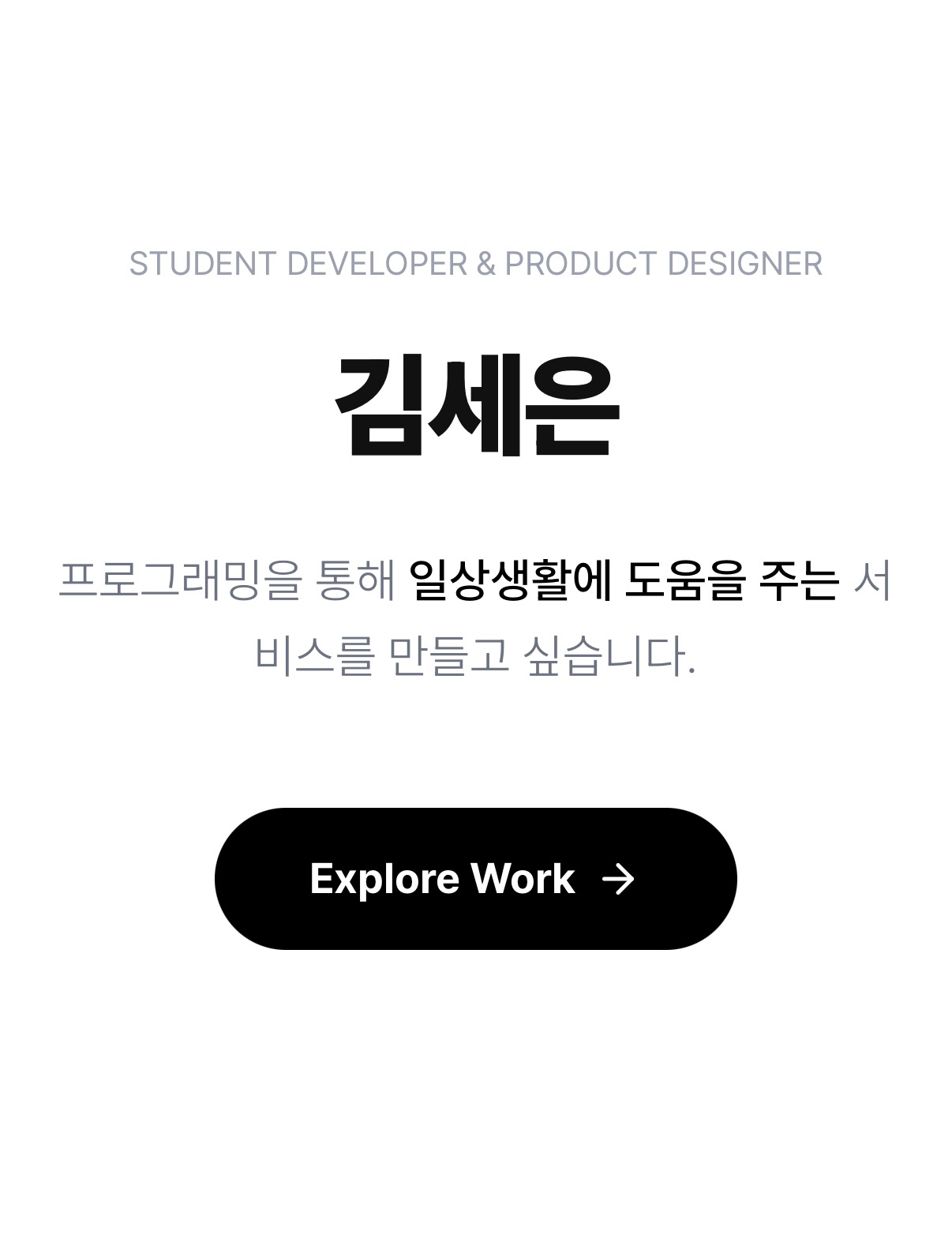 Student Developer & Product Designer 김세은 프로그래밍을 통해 일상생활에 도움을 주는 서비스를 만들고 싶습니다.